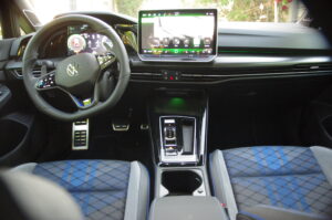 The Golf falters when you interact with its dashboard switchgear; there are too many touch sensors. The touch sliders, for example, are glossy and difficult to see during the day. You can inadvertently cull a drive mode or self-parking when adjusting a dash vent. The touchscreen’s graphics are bigger and clearer but difficult to stab while driving.