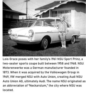 She was a good sport when Dad wanted to go camping: The only thing she demanded was NOT to have to sleep on the ground. They bought travel trailers, and we spent many happy summers on the road visiting our two grandmas and seeing historic sites. When the first Volkswagen arrived in 1957, it marked the start of a multi-generational family affair.