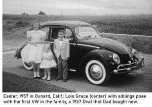 She was a good sport when Dad wanted to go camping: The only thing she demanded was NOT to have to sleep on the ground. They bought travel trailers, and we spent many happy summers on the road visiting our two grandmas and seeing historic sites. When the first Volkswagen arrived in 1957, it marked the start of a multi-generational family affair.