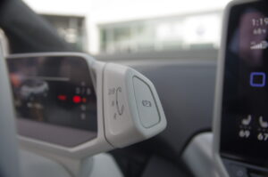 Two whimsical pedals: the long one has a VCR’s forward icon on it, while the slow one has a pause icon begin your drive. With the fob inside the cabin, just press the “pause” pedal and the ID is ready. Next, you twirl a funky knob on the right side of the instrument housing. Clockwise enables drive, do that again and you select regenerative braking, which commences almost one-pedal driving. Reverse is counter-clockwise and you press the knob inward for park. Releasing the forward pedal in standard drive mode imparts the same coasting sensation as gas-fueled VW with an automatic transmission.