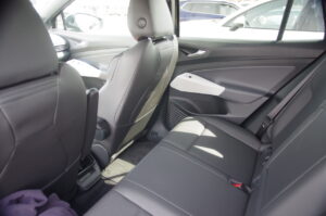 The 1st Edition model I drove includes two optional packs. The interior’s two-tone interior is sanitary. Attached to the white steering wheel’s column is a 5.3-inch digital instrument screen—like a tidy iPad. Since VW put much of the usual under-dash hardware in the “frunk,” it opened space for lots of cubbies and a less bulky dashboard. A soft dash pad, front door cards and seat mounted front armrests are inviting. Front or rear chairs are comfortable. VW sewed phone pouches into the front seat backs.