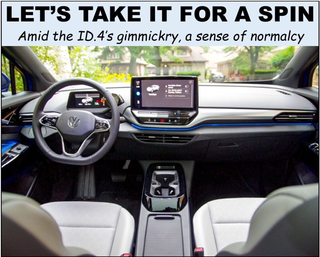 - DRIVING THE ID.4: Once you’re up to speed on the ID.4’s gimmickry, the car provides a comforting sense of normalcy.