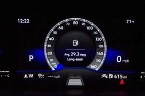 Driver info comes from VW’s eight-inch Digital Cockpit. You can tweak the display but it doesn’t let you simultaneously see a simulated tachometer and speedometer. The slow-to-boot MIB3 eight-inch infotainment touchscreen with voice control resides above the center console. My Android phone wirelessly paired with it via Bluetooth. But I found it difficult to find Android Auto with the phone plugged into the USB port. I usually saw the choice of Apple CarPlay or an iOS app. Looks like one must tell the device to forget previously paired devices — a hassle.