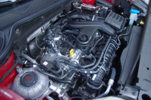 The SE in red-over-black Cloud Tex and cloth interior lists for $28,440. Add $1,200 for panoramic sunroof, $895 for IQ.DRIVE with semi-automated driving extras including adaptive cruise control with start/stop, Lane Assist and Active Blind Spot Monitor. Add $395 for 18-inch black alloy wheels. The bottom line is $31,325.