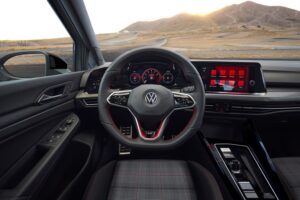 Gloss-black 19-inch wheels with red pinstripes, gloss-black roof, black mirror caps, honeycomb trim and “40” elements inside and out further celebrate the GTI’s aesthetic charms. Performance summer tires, adaptive dampers and speed-sensitive steering add to the fun. The engine cranks out 241 horsepower, the trend-setting 1983 Rabbit GTI sported 90 horsepower.