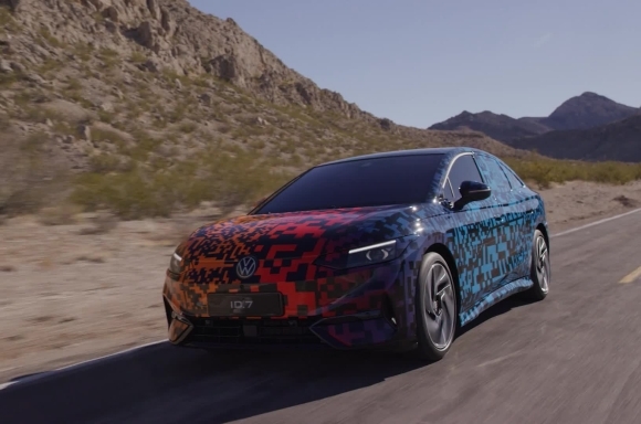 VW teased us with its ID.7 (BEV based on VW’s MEB architecture) wearing multilayered paintwork with electroluminescence effects. The ID.7 is similar to the ID.Aero concept. VW claims this sleek sedan has a very low aerodynamic drag, which boosts its range.