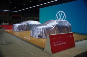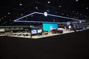 Here are shots of the 2023 VW Chicago Auto Show Booth. A line of ID.4s is stage left. The significantly revamped Atlas and Atlas Cross Sport are under the wrappers.