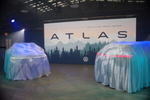 Chicago: What’s under these wrappers? Glad you asked. They’re covering the substantially new 2024 Atlas and Atlas Cross Sport. VW of America’s CEO, Pablo Di Si presented these new SUVs at Revel Motor Row during the 2023 Chicago Auto Show’s media preview.