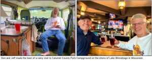 My Bus relaxed in the carport with the hope that none of the many chipmunks frolicking around it would try to move in (none did). On Wednesday morning, Sept. 27, we winterized and locked up the cabin, then began our drive of approximately 100 miles in the rain to our next campsite, at Wisconsin’s Calumet County Park Campground on the shore of Lake Winnebago.