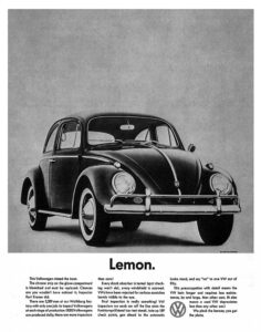 “Mad Men,” a fictional TV show about admen, often evoked 1960s verisimilitude. Within the program’s make-believe chromium jungle on Madison Avenue was a sense of historical accuracy. The show’s characters discussed actual period products and ad campaigns. In one notable episode, staffers from the Sterling Cooper agency scrutinized a VW print ad dubbed “Lemon.” Agency art director Salvatore Romano argued that the VW had “no chrome, no horsepower.” It was “foreign.”