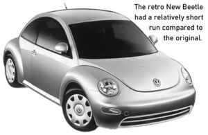 The Beetle mystique led VW to do something remarkable. It introduced a retro vehicle branded as the New Beetle. Some might recall Sun Country and Golden Beetle as two stabs at selling Mexican Beetles in Reagan-era USA. So, there was a precedent for probing consumer demand for another Beetle-like VW.