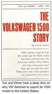 In sum, C&D described the frenzy over the VW 1500 like this: “If anyone believes in the Tinker Bell 1500, close your eyes and clap like mad.” Letters to Car and Driver (July 1963) implored the magazine for assistance. One Milwaukee woman asked “would you help us? … My husband and I have been impatiently awaiting the arrival of the VW-1500. …Can you give us a date regarding the importation of the 1500?”